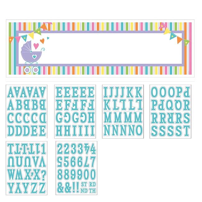Das personalisierbare Banner "Baby" besteht aus Kunststofffolie und hat eine Größe von ca. 165 x 50,8 cm. Im Lieferumfang sind ca. 120 Buchstaben, Zahlen, Ordinalzeichen und Satzzeichen enthalten, sodass Sie das Banner Ihren Wünschen entsprechend beschriften können.