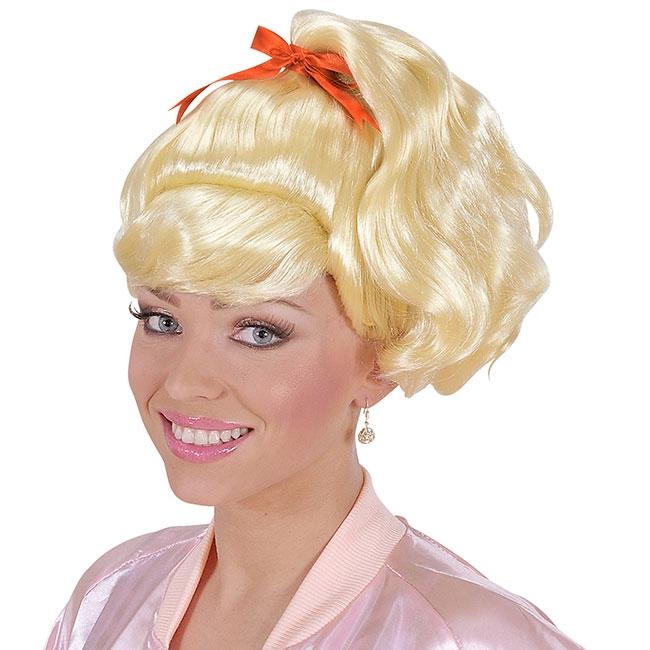 Mit dieser tollen Perücke kann man die fetzigen 50er Jahre wieder auferstehen lassen und zu coolen Rock`n´Roll Moves tanzen. Außerdem erinnert die Frisur super an "American Diner", die Kellnerinnen tragen in solchen Restaurants meist eine tolle Hochsteckfrisur mit Wellen. Die Perücke ist Blond.