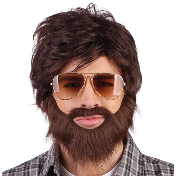 Perücke mit Vollbart "Dude"-braun