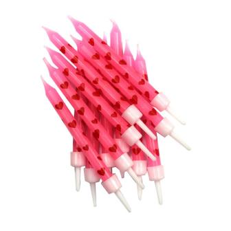 Die Geburtstagskerzen dürfen auf der Torte auf keinen Fall fehlen, denn schließlich muss das Geburtstagskind diese auch auspusten! Die pinken Mini-Kerzen sind mit roten Herzchen versehen und die passenden Kerzenhalter liegen ebenfalls bei. Sie erhalten die Geburtstagskerzen im 12er Pack.
