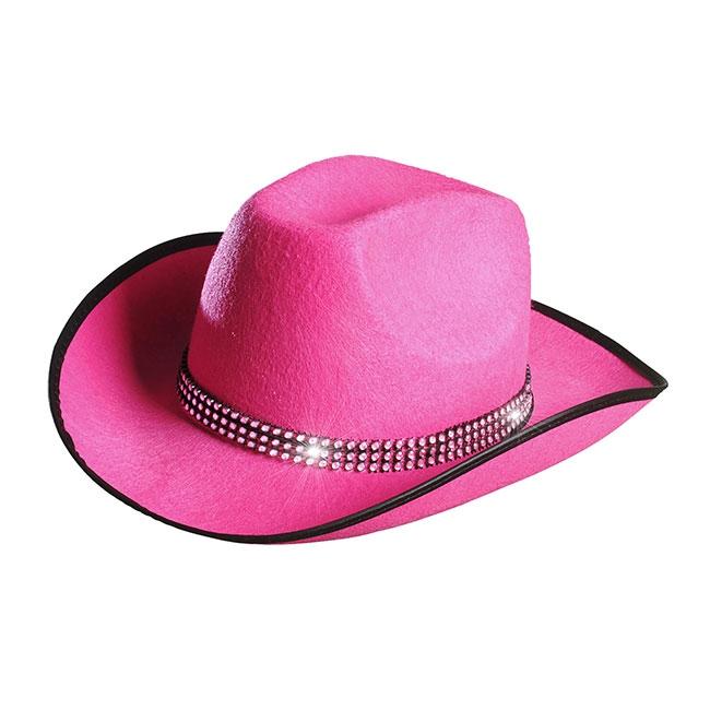 Dieser Hut sieht aus wie der klassische Cowboy-Hut, allerdings in einer echt partytauglichen Farbe! Er ist in pink mit schwarzem Abschluss am Hutrand designet. Als Hutband ziert ihn ein Band besetzt mit Strass-Stein-Imitaten. Es funkelt und glitzert, enthält aber keine echten Strass-Steine. Der Hut wird in Einheitsgröße geliefert.