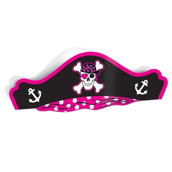 Artikel: Pinker Piratenhut aus Pappe 38 cm