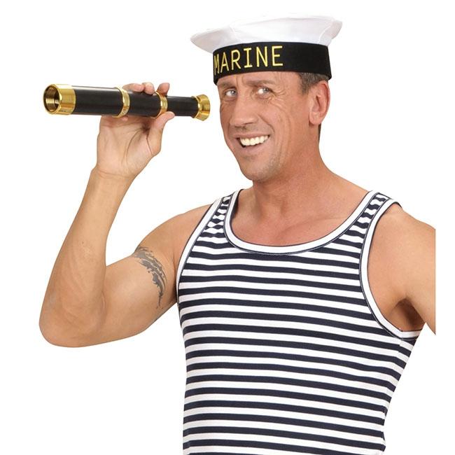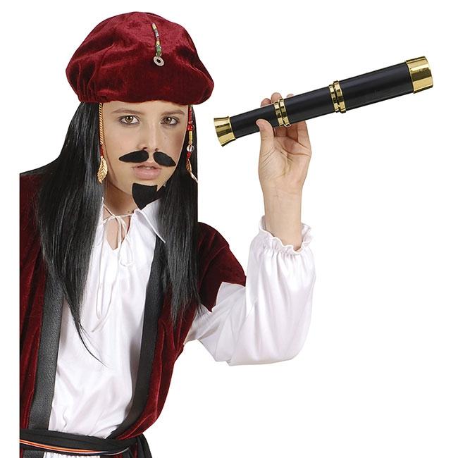 Mit diesem Fernglas sieht jeder Pirat gut! Es ist aus Kunststoff hergestellt, hat eine Länge von ca. 18 cm und einen Durchmesser von ca. 5 cm. Die gold, glänzenden Endstücke des Fernglases lassen das Accessoire besonders edel erscheinen.