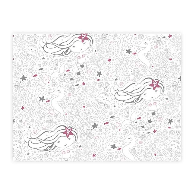 Das Platzset "Niedliche Meerjungfrau" zum Ausmalen wird im 8er Pack geliefert. Es besteht aus einseitig bedrucktem Papier und hat eine Größe von ca. 30 cm x 40 cm. Es ist mit der kleinen Meerjungfrau und Unterwasser-Motiven bedruckt. Das Platzset kann von den kleinen Gästen ganz individuell selbst ausgemalt werden. Die Stifte sind im Lieferumfang NICHT enthalten.