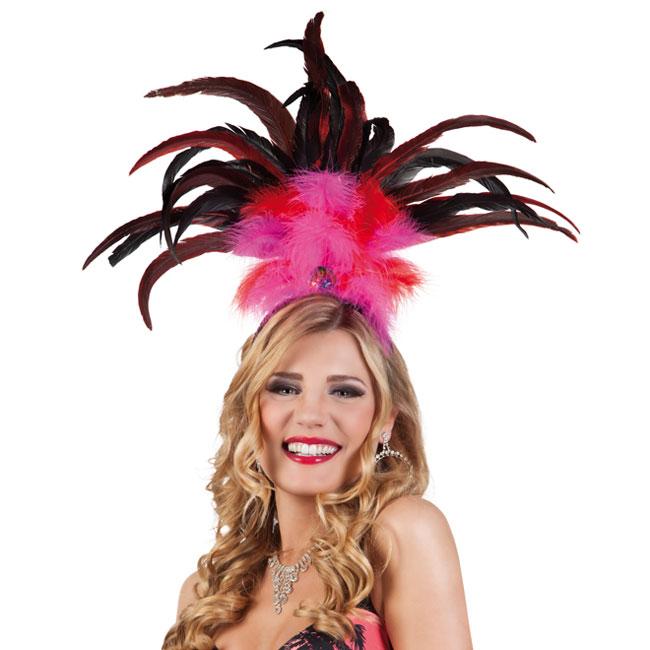 Mit diesem Haarreif gerät man garantiert nicht in Vergessenheit! Der schwarze Haarreif ist mit schönen, knalligen dekorativen Elementen bestückt. Er leuchtet in Pink, Rot und hellen Brauntönen. An der Vorderseite ist der Haarreif mit einem schimmernden Deko-Diamanten verziert, der in den Farben Grün und Gelb glitzert. Der Haarreif ist in Einheitsgröße erhältlich und ca. 34 cm hoch.