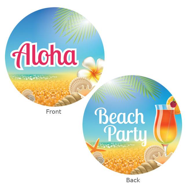 Mit diesem tollen Schild holt man sich Sommer, Sonne, Sonnenschein direkt in die eigenen 4 Wände. Mit einer Hawaii Party hat man ein super Motto und mit unserer Partydeko wird aus der Party Location eine Oase der hawaiischen Kultur. Das Schild ist beidseitig bedruckt und besteht aus Pappe. Der Durchmesser beträgt ca. 36 cm. Auf der Vorderseite befindet sich ein freundliches Motiv geprägt von Strand und Meer. In der Mitte steht "Aloha". Auf der Hinterseite sieht man ebenfalls einen Strand mit einem Cocktail und dem Schriftzug "Beach Party".