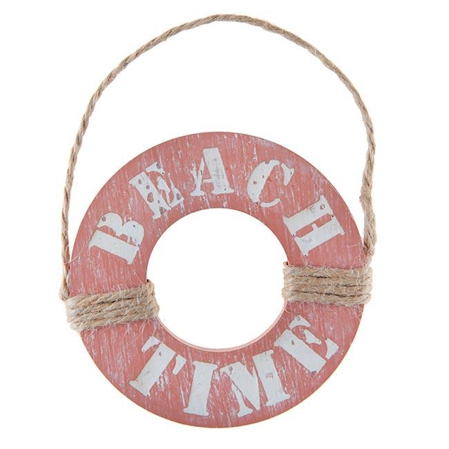 Die Raumdeko "Beach Time" hat einen Durchmesser von ca. 9,8 cm und besteht aus Kunststoff in der Farbe Altrosa. Sie ist mit einer Kordel versehen, mit der Sie die Raumdeko ganz bequem an der Wand befestigen können.
