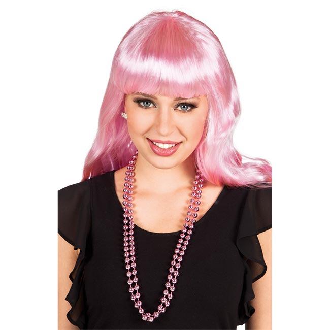 Mit dieser Perlenkette hat man ein auffälliges, aber sehr edles und glamouröses Schmuckstück am Körper. Die Kette besteht aus vielen kleinen, glänzenden Perlen in der Farbe Rosa. Sie ist ziemlich lang und kann daher doppelt um den Hals gelegt werden. Passend zur Kette kann man sich im Onlineshop andere Accessoires in der schönen Farbe Rosa auswählen und so ein tolles Outfit zusammen stellen.