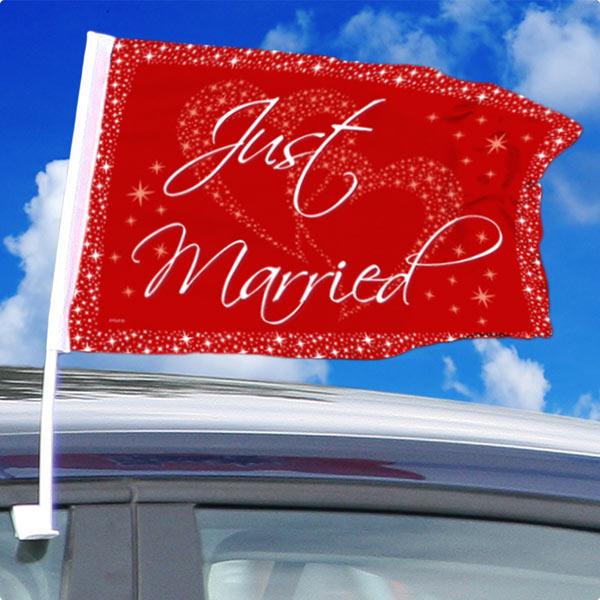 Artikel: Rote Autofahne "Just Married" 2er Pack
