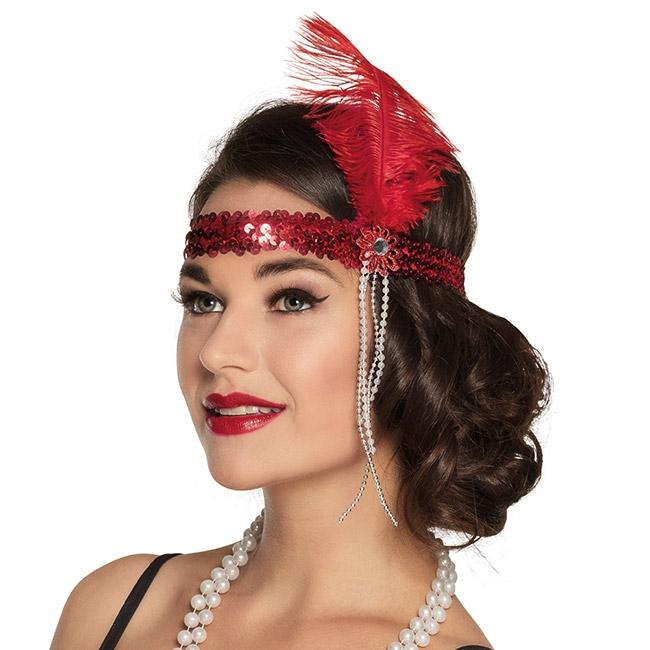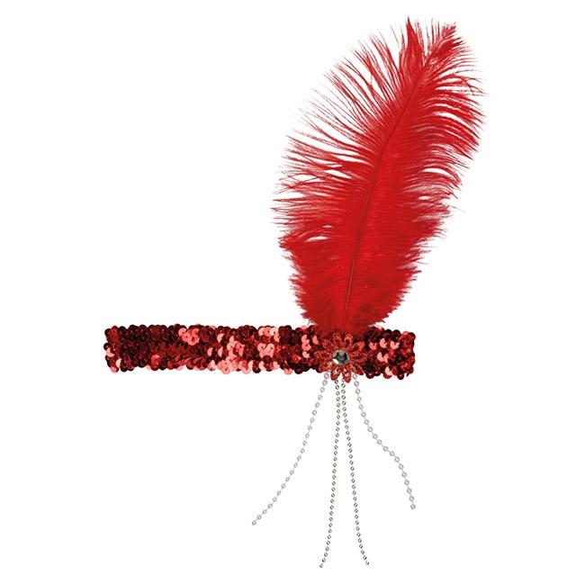 Artikel: Rotes Stirnband mit Feder "20er Jahre"