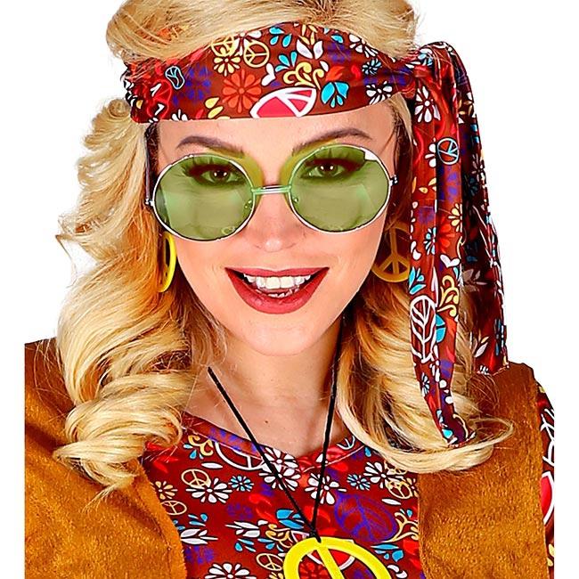 Die Brille Hippie mit kreisrunden Brillengläsern wird in einer Einheitsgröße für Erwachsene geliefert. Sie ist ca. 14,5 cm breit und besteht aus Kunststoff. Bitte beachten Sie, dass lediglich die Brille im Lieferumfang enthalten ist. Alle anderen Artikel, die Sie den Abbildungen entnehmen können, werden NICHT geliefert. Die Kunststoff-Brillengläser weisen einen Durchmesser von ca. 16 cm auf und sind gefärbt. Sie haben die Auswahl zwischen den Farben: Rosa, Orange, Gelb, Grün, Blau und Lila.