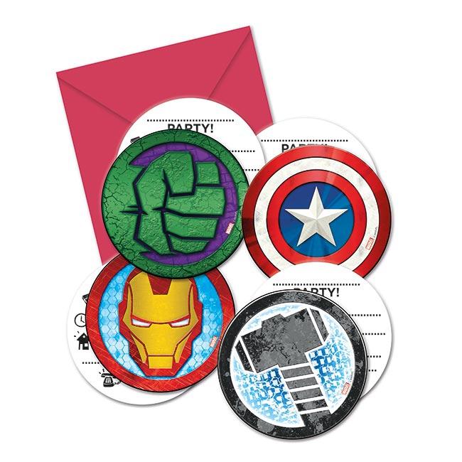 Artikel: Runde Einladungskarten "Mächtige Avengers" mit Umschlag 6er Pack