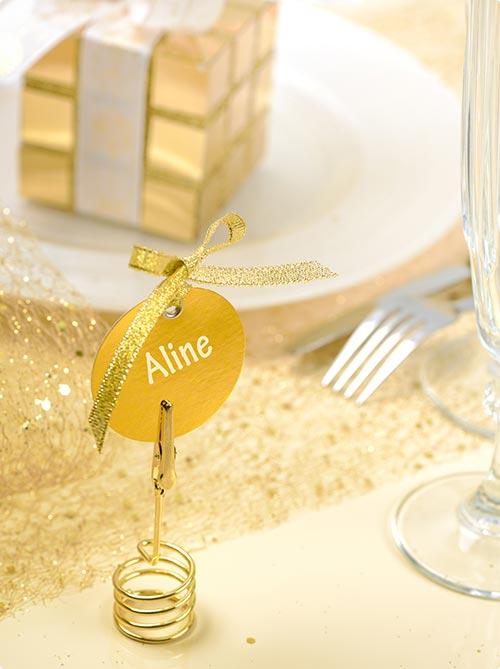 • Runde Metallic Namenskarten mit Satinband 12er Pack Dekobeispiel
