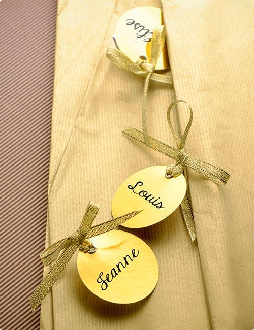 Runde Metallic Namenskarten mit Satinband 12er Pack-gold