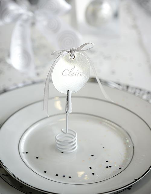• Runde Metallic Namenskarten mit Satinband 12er Pack Dekobeispiel