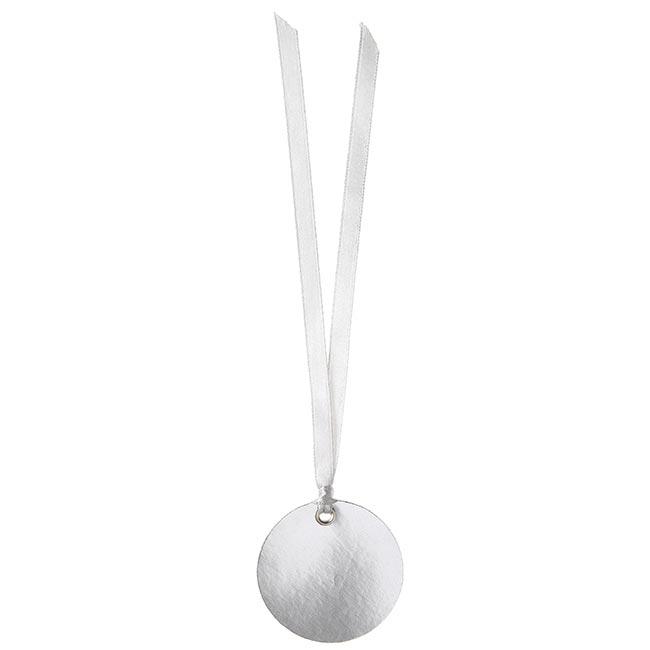 Runde Metallic Namenskarten mit Satinband 12er Pack-silber