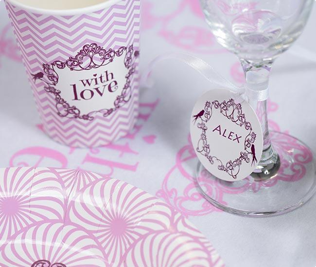 • Runde Namenskarten "With love" 12er Pack-pink - Deko-Beispiel