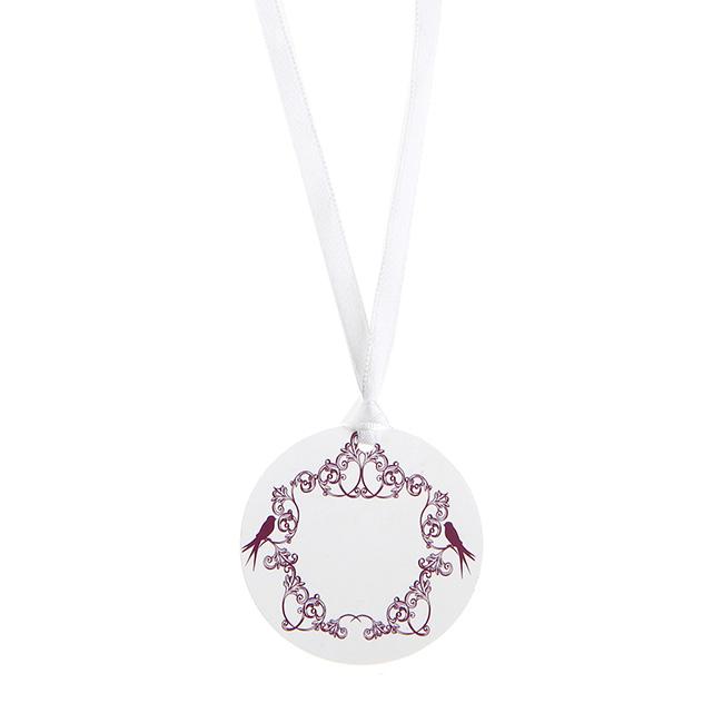 Die runden Namenskarten "With love" bestehen aus beidseitig bedruckter Pappe und werden im 12er Pack geliefert. Sie haben einen Durchmesser von ca. 4,6 cm und sind, je nach Auswahl, weiß und blau oder weiß und pink. An jedem Namenskärtchen befindet sich ein weißes Satinband, sodass die Kärtchen auch um ein Glas gebunden werden können. Vergessen Sie nicht, die Kärtchen davor noch mit Namen zu versehen!