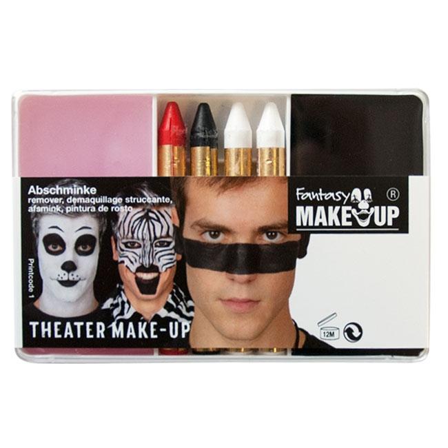 Dieses Schmink-Set mit Theater-Schminke beinhaltet viele wichtige Farben, um ein tolles Schmink Ergebnis zu erzielen. Die Hauptfarbe Schwarz ist ausreichend in der Verpackung abgefüllt (ca. 15 g). Außerdem im Lieferumfang enthalten ist ein Schminkstift in Rot und Schwarz, sowie zwei Stifte in der Farbe Weiß (jeweils ca.8 g). Ebenfalls sehr praktisch ist, dass die Abschminke (ca. 12 g) ebenfalls in der Verpackung enthalten ist, sodass die Schminke problemlos entfernt werden kann. Viel Spaß beim schminken!