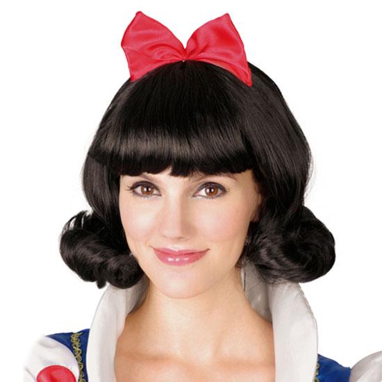 Wenn Sie noch die passende Perücke zu Ihrem Prinzessin Kostüm suchen, dann sind Sie hier genau richtig: Die Prinzessin, die die kleinen Wesen im Walde traf, ist ein wirklich schönes Kostüm! Die Perücke dazu ist schwarzhaarig und geht in etwa bis zum Kinn. Oben ist eine Schleife im kräftigen Rot angebracht, so rot, wie auch der giftige Apfel, von dem die schöne Prinzessin aß.