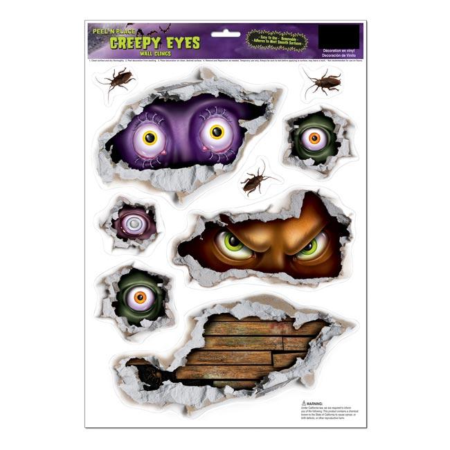 Diese Aufkleber sind selbstklebend und können an allen glatten Oberflächen angebracht werden. Sie halten sogar auf etwas rauerer Tapete. Sie werden 9-teilig zu Ihnen nach Hause geliefert und bestehen aus Kakerlaken und bösen Blicken. Die Aufkleber haben eine Größe zwischen ca. 4 cm und ca. 26 cm. Sie eignen sich hervorragend für eine Halloween- oder Horrorparty.