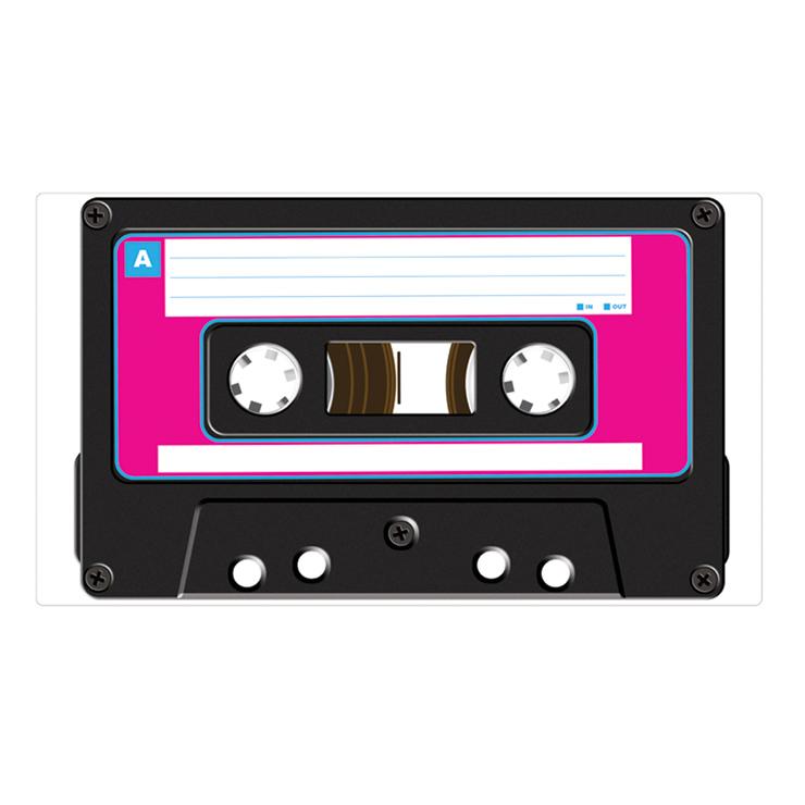 Was wären die 80er Jahre ohne die Kassette gewesen. Jeder hatte zu Hause einen Kassettenrecorder, ein Kassettendeck und natürlich für unterwegs einen Walk Man. Der Liebsten nahm man Mix-Tapes mit seinen Lieblingsliedern auf und das Leiern und der Bandsalat vom Magnetband gehörten bei den Lieblingskassetten einfach dazu. Mit dieser selbstklebenden Wanddeko können sich eine riesige Old-School Kassette in Ihre eigenen vier Wände kleben. Die selbstklebende Kassette ist ca. 51 x 29 cm groß und hat sogar Platz, um Sie zu beschriften. Eine extrem coole Deko für jeden Retro-Fan oder als Partydeko für die 80er Jahre Party.