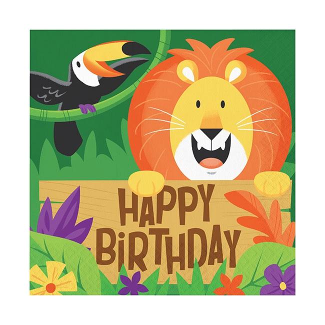Servietten "Fröhlicher Dschungel" Happy Birthday 16er Pack