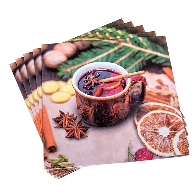 Die Servietten mit dem Motiv der Serie Glühwein werden im 20er Pack geliefert. Sie sind aus Papier gefertigt und 3-lagig. Gefaltet haben Sie ei Maß von 16,5 x 16,5 cm.