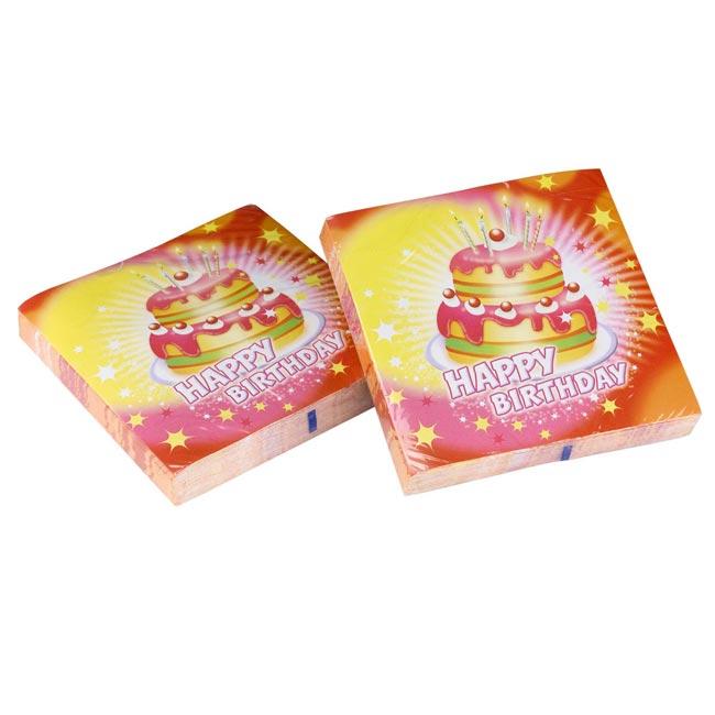 Mehr Info: Die Servietten "Happy Birthday Kuchen" haben eine gefaltete Größe von ca. 16,5 x 16,5 cm und sind aus 3 Lagen Papier gefertigt.