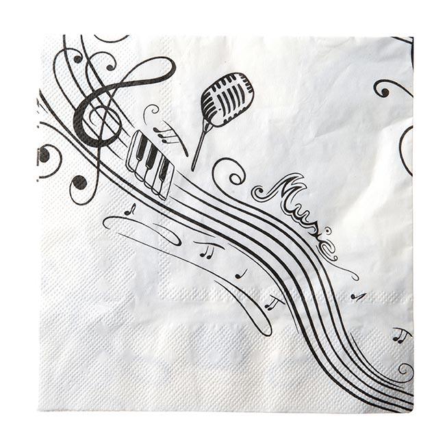 Die Servietten "Ohrwurm" werden im 20er Pack geliefert und bestehen aus Papier. Sie haben aufgefaltet eine Größe von ca. 33 x 33 cm. Außerdem sind sie mit Noten, Notenschlüsseln, Klaviertasten, Mikrofonen und diversen anderen Dingen aus dem Musikbereich bedruckt.