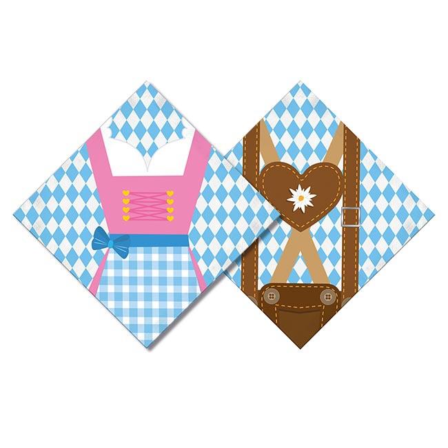 Zu einer zünftigen Gaudi gehört auch deftiges Essen, dazu sind die Servietten "Oktoberfest Gaudi" wie gemacht. Sie werden im 20er Pack geliefert und bestehen aus zweilagigem Papier. Gefaltet haben sie eine Größe von ca. 16,5 x 16,5 cm, entfaltet sind die Servietten ca. 33 x 33 cm groß. Statt ausschließlich bayrische Rauten, sind die Servietten auf einer Seite mit einem feschen Dirndl, und auf der anderen Seite mit einer schicken Lederhose bedruckt.