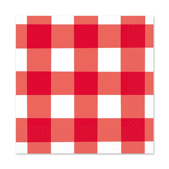 Die Servietten "Sommerliches Karomuster" werden im 16er Pack geliefert. Aufgefaltet haben sie eine Größe von ca. 33 x 33 cm. Die Servietten bestehen außerdem aus Papier und sind rot-weiß kariert.