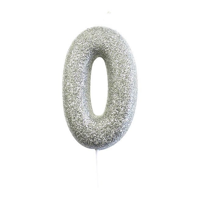 Silberne Zahlenkerze "Glitzer" 7 cm-0