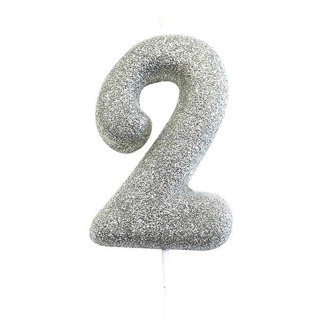 Silberne Zahlenkerze "Glitzer" 7 cm-2