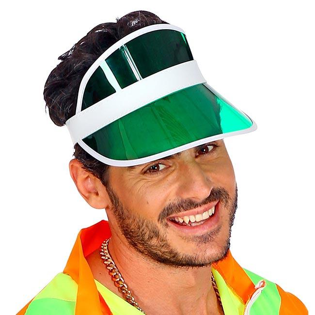 Die Sonnenblende 80er wird in einer Einheitsgröße für Erwachsene geliefert. Sie passt sich aufgrund des elastischen Bandes jeder Kopfform an. Bitte beachten Sie, dass im Lieferumfang lediglich die Kappe enthalten ist. Alle anderen Artikel, die Sie den Abbildungen entnehmen können, werden NICHT geliefert. Sie ist in den Farben Blau mit Weiß, Grün mit Weiß, Rosa mit Weiß und Orange mit Weiß erhältlich.