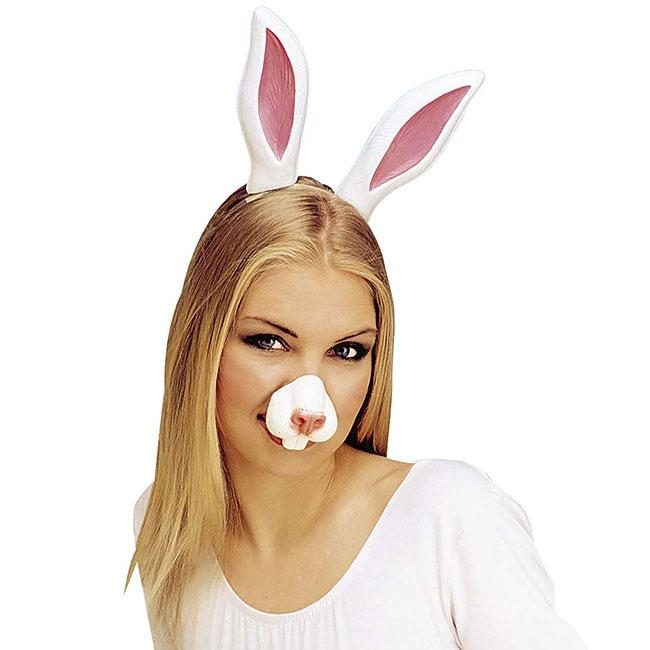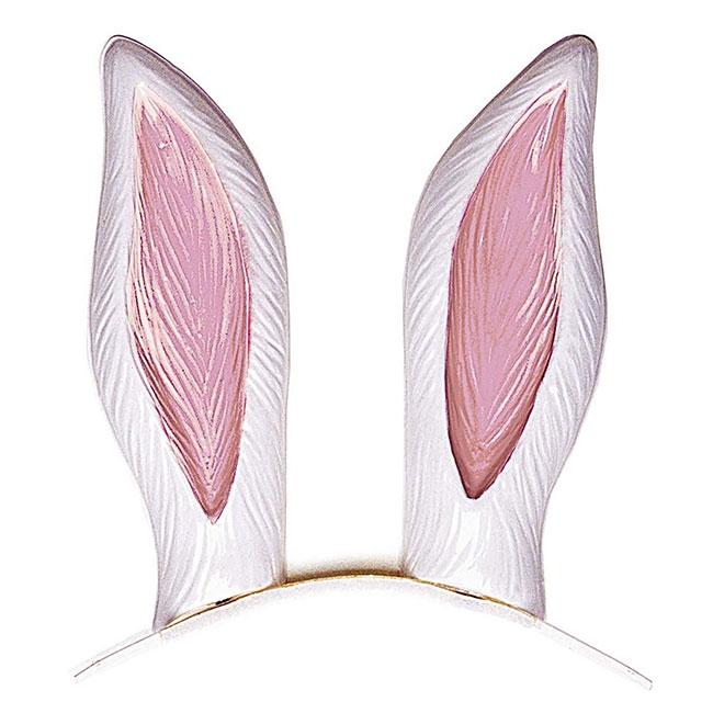 Die Hasenohren bestehen aus Kunststoff und sind weiß. Die Vorderseite der ca. 16 cm spitz zulaufenden Ohren ist rosafarben. Befestigt werden die Ohren über ein Gummiband. Die Ohren werden über einen dünnen Plastikstreifen auf dem Kopf aufliegend gehalten.