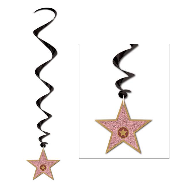 Stars & Sternchen bei Ihnen zu Hause? Das ist nicht so ganz einfach, aber zumindest kann man eine Hollywood-Party planen. Dekorieren Sie Ihre 4 Wände und kleiden Sie sich wie die Stars von heute. Mit der passenden Partydeko aus unserem Onlineshop ist das ganz einfach. Diese Deckenhänger werden im 5er Pack zu Ihnen nach Hause geliefert. Sie haben eine Länge von ca. 94 cm und bestehen aus einem Wirbel aus Folie, an dem ein Stern aus Pappe befestigt ist. Dieser hat das Muster des Walk of Fame Sterns.