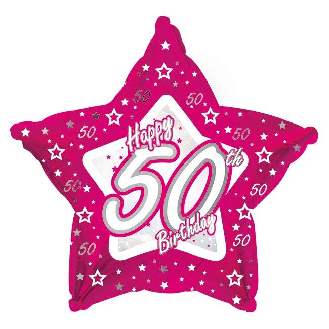 Sternförmiger Folien-Ballon Happy Birthday "Pretty Pink 50" 45 cm