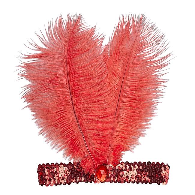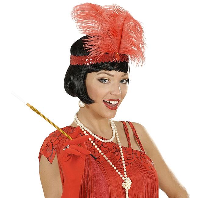 Artikel: Stirnband mit Federn und Diamant "20er Jahre Lady"-rot