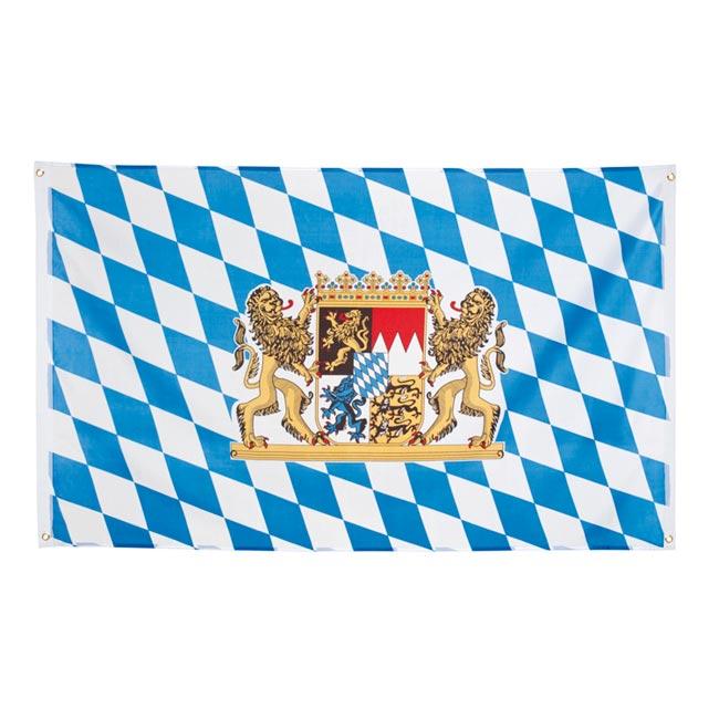 Dieser Banner hat eine Länge von ca. 150 cm und eine Breite von ca. 90 cm und besteht aus Stoff. Er sieht aus wie die bayrische Flagge, ist blau-weiß kariert und hat das Wappen mit den bekannten Löwen drauf. Der Stoff-Banner hat an jeder Ecke eine Öse mit Loch, sodass man problemlos eine Schnur durchstecken kann und den Banner an der Wand befestigen kann. Natürlich kann er auch ganz einfach mit Heftnadeln angebracht werden. Er besteht zu 100% aus Polyester.