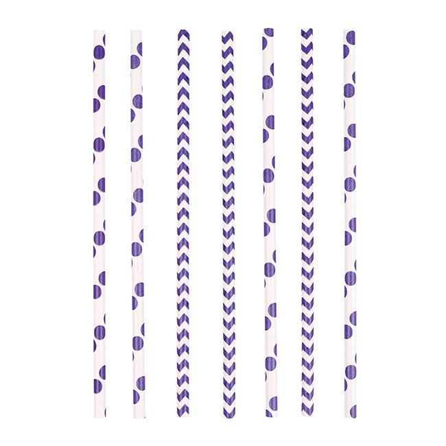 Strohhalme "Punkte und Zickzack" 24er Pack-lila