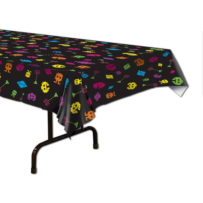 Diese schwarze Tischdecke mit den kleinen, bunten, "pixeligen" Monstern passt super zu jeder 80er Jahre Party! Die kleinen Monster sind die "pixeligen" Stars eines Computerspiels aus der Zeit, in der der Computer - langsam aber sicher - reif für die Haushalte von Otto Normalverbrauchern wurde. Die Zeit der Gaming-Spiele ist auch die Zeit, in der schrille Farben und schräge Klamotten Hochkonjunktur hatten. Wenn auch Sie ein Kind dieser Zeit sind und stolz darauf sind, ist das allein ein Grund zum Feiern! Und dann auch am besten mit der passenden Dekoration!