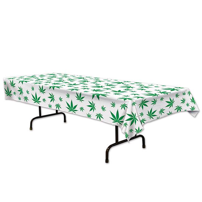 Die Tischdecke "Hanfblätter" ist aus einer abwaschbaren 100% Polyethylen gefertigt und hat eine Größe von ca. 137 cm x 274 cm. Das Motiv zeigt Hanfblätter in verschiedener Größe, welche kreuz und quer über die komplette Fläche der Decke verteilt sind. Die Grundfarbe der Tischdecke ist weiß.