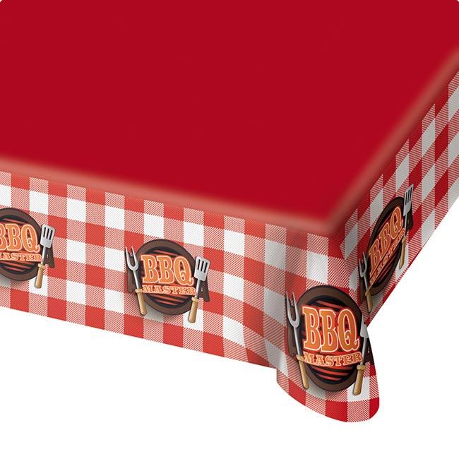 Die Tischdecke "Meisterliches BBQ" hat die stattliche Größe von ca. 138 x 274 cm. Sie besteht aus einseitig bedruckter Kunststofffolie und ist abwischbar. Während die Mitte der Tischdecke einfarbig Rot ist, haben die Ränder den prägnanten rotweiß karierten Tischdecken-Look. Das „BBQ Master“ Motiv lässt erahnen was heute auf den Tisch kommt.