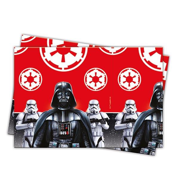 Die Tischdecke "Star Wars - Die finale Schlacht" besteht aus Kunststofffolie, ist einseitig bedruckt und ca. 120 x 180 cm groß. Die Ränder der Tischdecke sind gesäumt von Darth Vader und seinen Sturmtruppen. In der Mitte ist die Tischdecke einfarbig rot und mit dem Logo des Widerstands in verschiedenen Größen dekoriert.