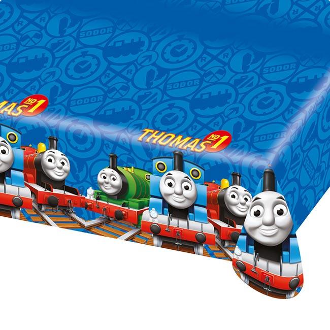 Die Tischdecke "Thomas die kleine Lokomotive" hat eine Größe von ca. 180 x 120 cm. Sie besteht aus Kunststoff und zeigt als Motiv Thomas und seine Freunde.