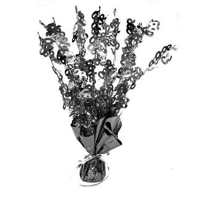 Edel, glamourös und leuchtend-glänzend. Mit dieser Tischdeko Fontäne "Happy 60th!" Black & White kann man einen 60. Geburtstag ganz nach dem Motto Schwarz und Weiß feiern, denn diese Deko passt super dazu! Die Tischdeko hat eine Höhe von ca. 38 cm und besteht rundum aus glänzender Folie. Diese leuchtet in den Farben Schwarz und Silber. An den Enden sind viele kleine 60er Zahlen bedruckt, so dass die Deko für einen 60. Geburtstag perfekt ist!