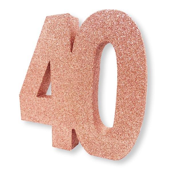 Tischdeko "Glitzerzahl 40 in Roségold" 20 cm