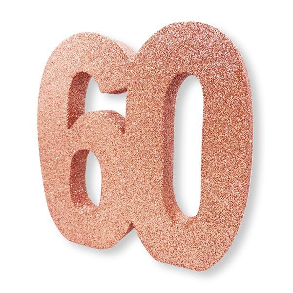 Tischdeko "Glitzerzahl 60 in Roségold" 20 cm