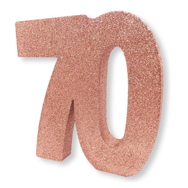 Tischdeko "Glitzerzahl 70 in Roségold" 20 cm